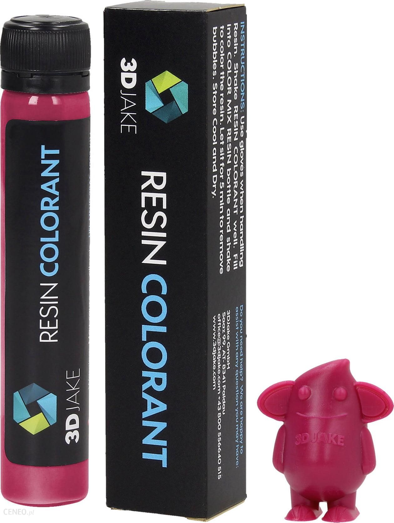 Barwnik żywiczny w kolorze telemagenta Używając Resin Colorant, otwiera się pełne spektrum kolorów, po prostu mieszając je z naszą żywicą Color Mix Resin. Możliwe są indywidualne kolory przezroczyste lub nieprzezroczyste. Materiał jest produkowany w Austrii z zachowaniem najwyższych standardów jakości. Wysokiej jakości surowce zostały do siebie precyzyjnie dopasowane. Zalecana ilość barwnika: 0,5 kg żywicy – maksymalnie 12,5 g barwnika 1 kg żywicy – maks. 25 g barwnika Używanie barwnika żywicy 3DJake: Wstrząsaj dobrze 3DJake Resin Colorant przez 15-20 sekund za każdym razem Wlej Colorant do 3DJake Color Mix Resin i szczelnie zamknij Następnie energicznie wstrząsaj przez 15-20 sekund Pozostaw żywicę na 5 minut, aby usunąć pęcherzyki powietrza Przed każdym kolejnym użyciem dobrze wstrząsnąć barwioną żywicą Dodatkowe informacje: Do każdej butelki Color Mix Resin przeznaczona jest odpowiednia butelka Resin Colorant. Możliwe jest połączenie różnych kolorów Resin Colorant w jednej butelce, ale dodana ilość nie powinna przekraczać 25 g / kg (butelki 12,5 g / 500 g). Zmieszanie wyższych dawek żywicy barwnikowej może obniżyć jakość druku. Barwniki RAL są mocno napigmentowane w celu uzyskania jak najwyższego stopnia krycia. Pigmenty te osadzają się w czasie i należy je mieszać przed każdym nadrukiem lub przed ponownym włożeniem do butelki. Dodatek barwników do żywic innych marek został pomyślnie przetestowany.