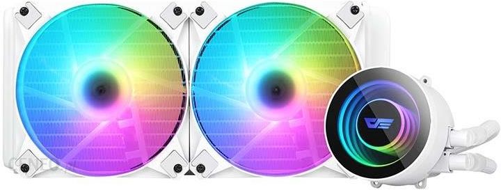 Chłodzenie wodne do komputera Darkflash DX240Zadbaj o odpowiednie chłodzenie procesora swojego komputera. Chłodnica wodna DX240 zachwyca niezawodnym działaniem i oryginalnym, stylowym designem. Kolorowe podświetlenie pozwala nadać Twojemu sprzętowi niepowtarzalny charakter – produkt obsługuje też synchronizację z płytą główną. Urządzenie efektywnie rozprowadza ciepło, a dzięki zastosowanym rozwiązaniom technicznym pracuje wyjątkowo cicho. Jest kompatybilny z procesorami Intel i AMD, a jego montaż okazuje się niezwykle prosty.Optymalna temperaturaChłodnica została wykonana z wysokiej klasy materiałów, które znakomicie przewodzą ciepło. Faliste żebra urządzenia pozwoliły zwiększyć obszar efektywności działania urządzenia, a co za tym idzie zapewniają lepsze chłodzenie. Za wydajną pracę DX240 odpowiadają też wbudowane wentylatory. Chłodnica gwarantuje skuteczne rozprowadzanie i wymianę ciepła, umożliwiając zachowanie odpowiedniej temperatury procesora.Cicha pracaHałas Ci przeszkadza? Mamy dla Ciebie doskonałą wiadomość! Chłodnica pracuje wyjątkowo cicho – jej poziom głośności jest bardzo niski. Stało się to możliwe dzięki wykorzystywanej przez łopaty wiatraków technice przechwytywania hałasu, która pozwoliła zmniejszyć opór powietrza. Graj i pracuj w spokoju – uciążliwy szum już nie będzie Cię irytował!Bezproblemowa instalacjaNie obawiaj się problemów z montażem chłodnicy. Produkt jest kompatybilny z wybranymi modelami procesorów Intel i AMD, a jego instalacja jest stosunkowo prosta. Nie będzie stanowić zbyt wielkiego wyzwania. Możesz też zsynchronizować urządzenie z płytą główną.Jeszcze więcej praktycznych rozwiązańRura chłodzenia DX240 została pokryta wytrzymałym, plecionym materiałem. To pozwoliło uzyskać interesujący efekt stylistyczny, a także zwiększyć bezpieczeństwo użytkowania. Darkflash umiejętnie łączy estetyczne i praktyczne rozwiązania, aby dostarczać Ci niezawodnych, a zarazem atrakcyjnych produktów!Kolorowe podświetlenieUrządzenie wyróżnia się fantastycznym, gamingowym designem. Spiralne, kolorowe podświetlenie przyciąga wzrok i sprawia, że Twój komputer może prezentować się znakomicie. Przemyślane wzornictwo bloku wodnego pozwoliło znacznie udoskonalić wygląd chłodnicy – DX240 prezentuje się nowocześnie i stylowo. Aby uzyskać najciekawsze efekty estetyczne, łącz chłodnicę z innymi urządzeniami z RGB.SpecyfikacjaProducent DarkflashModel Twister DX-240 ARGBWymiary bloku wodnego 75x75x53 mmPrędkość pompy 2400 +/-10% RPMNapięcie pompy 12 VWymiary radiatora 274x120x27 mmMateriał chłodnicy AluminiumWymiary rury ⌀12×200 mmMaks. poziom głośności 23 dB (A)Wymiary wiatraka 120x120x25 mmPrędkość wiatraka 800 ~1800 RPM +/-10%Przepływ powietrza 75,3 CFM (maks.)Poziom głośności 17-35,2 dB (A) (maks.)Ciśnienie statyczne 0,81 mm H2O (maks.)Rodzaj łożyska RifleMTTF 40 000 hKompatybilność Intel: LGA 2066/2011 V3/2011/115X;AMD: AM4/AM3(+)/AM2(+)/FM2(+)/FM2;Kolor Biały