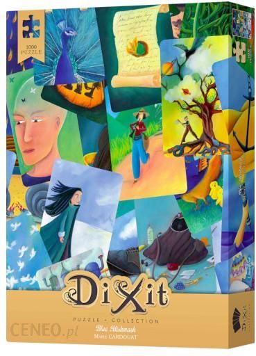 Przepiękne ilustracje z gry Dixit teraz dostępne jako puzzle! Wkrocz do świata jak ze snu i odkryj na nowo najpopularniejsze obrazy, pobudzające wyobraźnię graczy na całym świecie.Dixit: Puzzle – Blue MishMash to wysokiej jakości puzzle złożone z 1000 elementów, które po złożeniu dają obraz o wymiarach 48×68 cm. Autorką ilustracji jest Marie Cardouat, francuska ilustratorka, która stworzyła grafiki dla gier Dixit i Dixit: Odyseja oraz dodatku Dixit 2: Przygody.W pudełku oprócz puzzli znajdziesz unikatową kartę do gry Dixit, niedostępną w żadnym innym zestawie.Czym jest Dixit?To narracyjna gra karciana, w której wymyślamy i odgadujemy skojarzenia do wieloznacznych, bogato ilustrowanych kart. W każdej rundzie jedna z osób zostaje Bajarzem – wybiera dowolną kartę z ręki i podaje hasło, które jej zdaniem odzwierciedla obrazek. Może to być pojedyncze słowo, całe zdanie, cytat lub fragment piosenki czy filmu. Kolejne osoby wybierają spośród swoich kart po jednej pasującej do słów Bajarza, a następnie wszystkie obrazki są tasowane. Zadaniem graczy jest odgadnięcie, który obrazek był tym pierwszym.
