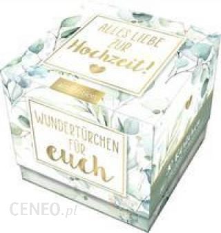 Schöne Wünsche zur Hochzeit – 30 kleine Fensterkärtchen für eine glückliche Ehe Diese Kartenbox ist eine tolle Geschenkidee zur Hochzeit, mit garantiertem Überraschungseffekt! Die liebevoll gestalteten Kärtchen lassen sich öffnen und offenbaren erst dann dem Hochzeitspaar ihre guten Wünsche.Endlich trauen sich deine Lieblingsmenschen, sagen „Ja, ich will!”? Du möchtest einem befreundeten Brautpaar zu seinem Liebesglück gratulieren? Dann ist dieses Kartenset genau richtig! Es enthält Herzenswünsche, gefühlvolle Sprüche und kleine Portionen Liebe für den gemeinsamen Alltag nach der Hochzeit. Origineller Wundertüten-Effekt: Schön gestaltete kleine Karten, die sich öffnen lassen und lauter gute Wünsche und Worte der Liebe zur Hochzeit schenken Schönes Ritual für das Leben zu zweit: Gemeinsam ein Kärtchen ziehen und jeden Tag mindestens einen Grund haben, die Liebe zu feiern Tolles Hochzeitsspiel: Trauzeug:innen aufgepasst! Einfach Kärtchen an die Gäste verteilen und laut vorlesen lassen – daran wird sich das Paar noch lange erinnern Ideales Geschenk zur Hochzeit: Ob als Zusatz zu einem Geldgeschenk oder als kleine Aufmerksamkeit per Post – diese 30 Portionen Liebe lassen jedes Herz vor Freude höherschlagen. Hochwertige Verpackung: Du kannst das ganze Set verschenken, nur einzelne Kärtchen verschicken oder sie als Geschenkanhänger nutzen. Happy Wedding Day Ob für das befreundete Pärchen, die Schwester, Lieblingsfreundin oder Lieblingskollegin – dieses Wunschorakel ist ein schönes Mitbringsel für alle, die sich das Jawort geben.