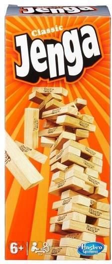 Szukasz gry, która łączy przyjaciół, umiejętności, niepewność, śmiech i trochę szczęścia? Zdobądź klasyczną grę Jenga z oryginalnymi drewnianymi klockami! Ostrożnie wyjmij drewniany klocek z wieży i połóż go na wierzchu. Początkowo to łatwe, ale w miarę jak ubywa klocków, wieża staje się chwiejna. Gracze będą siedzieć jak na szpilkach, próbując zapobiec zawaleniu się wieży. Klasyczną grę Jenga można szybko przygotować i grać niemal kiedykolwiek i gdziekolwiek. To świetna gra na imprezy i wieczory w gronie rodzinnym, a zasady są łatwe, więc grać może cała rodzina. Dla dzieci w wieku od 6 lat. Jak Ty układasz wieżę Jenga? Jenga jest zarejestrowanym znakiem towarowym Pokonobe Associates. „How Do You Jenga?” jest znakiem towarowym Pokonobe Associates. Hasbro Gaming i wszystkie powiązane właściwości są znakami towarowymi firmy Hasbro.Zestaw zawiera 54 drewniane klocki Jenga, rękaw do układania wieży z klocków oraz instrukcję.Wiek: od 6 lat