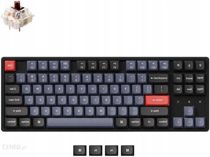 Keychron został założony w 2017 roku przez grupę entuzjastów klawiatur, którzy posiadali duże doświadczenie w produkcji takich urządzeń.Klawiatury mechaniczne tej marki to doskonały produkt o minimalistycznym designie, który dostępny jest dla użytkowników w różnorodnych wariantach.Keychron K8 Pro QMK/VIA Wireless Mechanical Keyboard – Bezprzewodowa Klawiatura Customowa i MechanicznaOświetlenie klawiatury: RGBRamka: AluminiowaKeychron K8 Pro QMK/VIA Wireless Mechanical Keyboard to pierwsza na świecie gotowa do użycia bezprzewodowa klawiatura mechaniczna QMK/VIA torująca drogę do nowej ery klawiatur mechanicznych.Każdy może opanować dowolne klawisze klawiatury lub polecenia makr za pomocą VIA na klawiaturze bezprzewodowej. Wraz z charakterystycznymi funkcjami i ulepszonym dźwiękiem pisania, K8 Pro przenosi doświadczenie pisania na zupełnie nowy poziom z nieskończonymi możliwościami. Doskonałe rozwiązanie do wielozadaniowości. Możesz połączyć K8 Pro z maksymalnie 3 urządzeniami bezprzewodowo za pośrednictwem stabilnego Broadcom Bluetooth 5.1, aby zapewnić bezproblemową wielozadaniowość na laptopie, telefonie i tablecie. Przełączaj się między nimi szybko i jest w pełni kompatybilny zarówno z komputerami Mac, jak i Windows. Niezawodne połączenie przewodowe USB typu C jest również dostępne, gdy tego potrzebujesz.Keychron K8 Pro i QMK/VIA dosłownie oznacza nieskończone możliwości płynnego przepływu pracy. Dzięki zespołowi inżynierów marki Keychron po raz pierwszy w historii bezprzewodowa klawiatura mechaniczna ma takie możliwości zaraz po wyjęciu z pudełka. Po prostu podłącz K8 Pro do urządzenia za pomocą kabla, przeciągnij i upuść ulubione klawisze lub polecenia makr, aby przyporządkować dowolny klawisz w dowolnym systemie (macOS, Windows lub Linux).Każdy szczegół ma znaczenie dla spersonalizowanego pisania, dlatego Keychron daje Ci tą możliwość. Możesz wymienić każdy przełącznik w K8 Pro na prawie wszystkie 3-pinowe i 5-pinowe przełączniki mechaniczne typu MX dostępne na rynku (w tym Cherry, Gateron, Kailh, Panda itp.) bez konieczności lutowania. Możesz dostosować własne wrażenia podczas pisania w kilka sekund.Mechanizm klawiszy: BrownSpecyfikacja TechnicznaLiczba klawiszy: 87 (Tenkeyless)Przełączniki (bez wersji Barebone): Gateron G Pro MechanicalPrzełącznik twarzy: skierowany na południe RGBStabilizatory: wkręcane stabilizatory montowane na płytce drukowanejLiczba klawiszy multimedialnych: 12Materiał ramy: ABS + Rama AluminiowaMateriał nasadki klawiszy (bez wersji Barebone): Double-shot PBTProfil nasadek klawiszy: OSA (profil OEM z kątem sferycznym)Układ: ANSICzęstotliwość odpytywania (tryb przewodowy): 1000 HzCzęstotliwość odpytywania (tryb bezprzewodowy): 90 HzN-Key Rollover (NKRO): Tak w trybie bezprzewodowym i przewodowyŁączność i zasilaniePodświetlany: 19 rodzajów podświetlenia RGBBateria: akumulator litowo-polimerowy 4000 mAh;Czas pracy BT (wyłączony podświetlenie): do 300 godzinCzas pracy BT (RGB): do 100 godzin (najniższa jasność)Połączenie: kabel Bluetooth i Type-CWersja Bluetooth: 5.1Nazwa urządzenia Bluetooth: Keychron K8 ProZgodny system: macOS/Windows/LinuxWymiaryWymiary (wersja z ramą aluminiową): 359 x 127 mm (14,1 x 5 cali)Waga: 1146 g / 2,5 funtaWysokość wraz z nasadka klawiszy (przód) 35 mm (1,37 cala)Wysokość wraz z nasadka klawiszy (tył) 42 mm (1,65 cala)