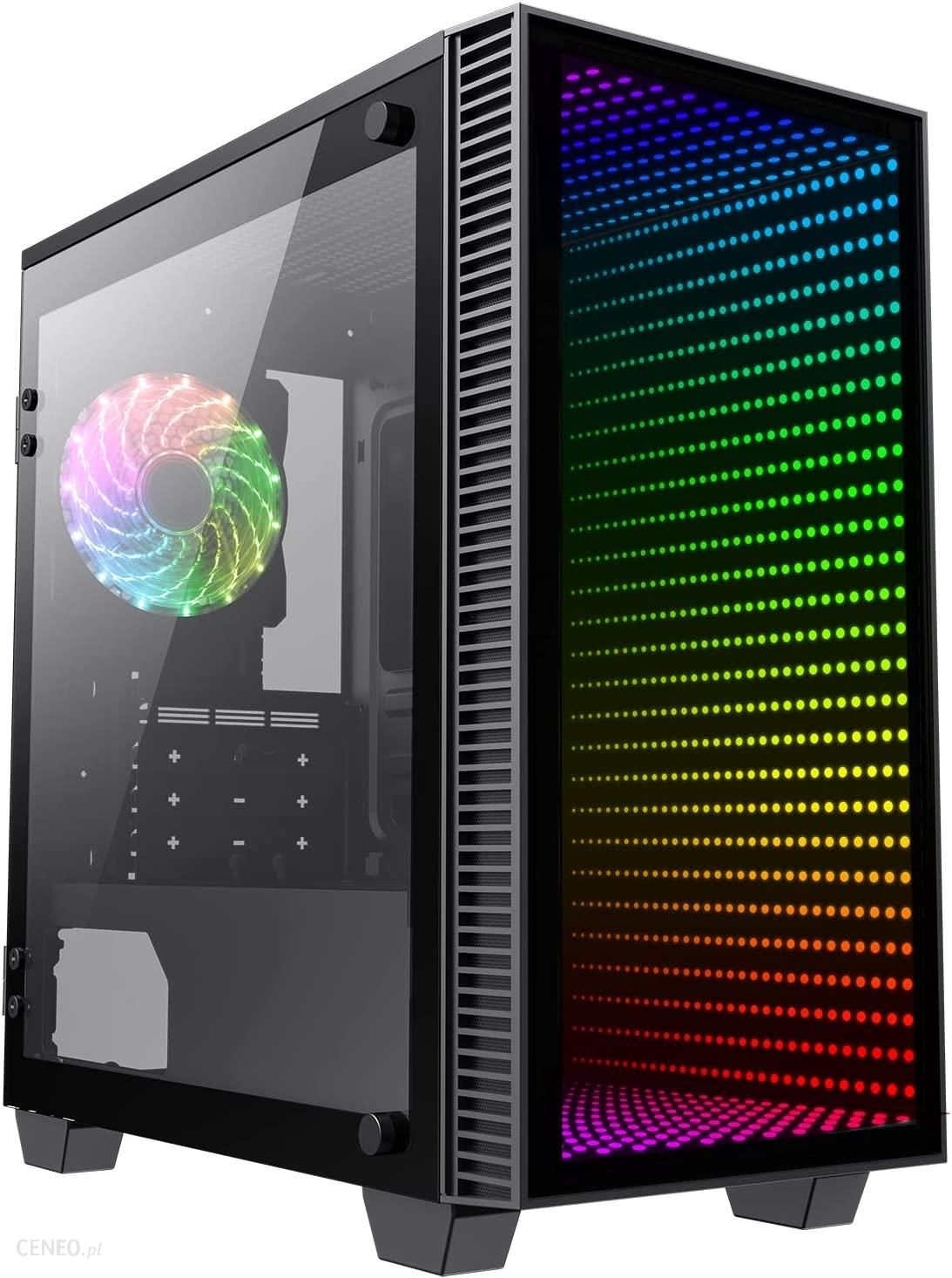 Specyfikacja:Procesor: Intel i5-8400RAM: 8 GB DDR4Dysk: 480 GB SSDLiczba slotów RAM: 2 (2 x zajęte)Karta graficzna: Nvidia GTX 1650 Super (4GB GDDR6)Model płyty głównej: Gigabyte H310M S2H 2.0Gniazda rozszerzeń: 1 x PCIe 3.0 (x16) oraz 2 x PCIe 2.0 (x1)Wentylatory: 2 (1 x 120 mm ARGB – tył; 1 x 120 mm ARGB – góra)Zasilacz: Corsair VS550 (550W)System operacyjny: Windows 10 ProfessionalZłącza zewnętrzne płyty głównej:Ilość portów USB 3.0: 2Ilość portów USB 2.0: 4Ilość portów HDMI: 1Ilość portów DVI-D: 1Ilość portów VGA: 1Porty audio: 3 (1 x wejście; 1 x wyjście; 1 x mikrofonowe)Porty PS/2Port RJ-45Złącza karty graficznej:Ilość portów DVI-D: 1Ilość portów HDMI: 1Ilość portów DisplayPort: 1Złącza przedniego panelu:Ilość portów USB 3.0: 2Porty audio: 2 (1 x słuchawki; 1 x mikrofon)Parametry fizyczne:Model obudowy: GameMax Mini Abyss ARGBTyp obudowy: Komputer stacjonarnyKolor obudowy: CzarnyWysokość produktu: 39.1 cmSzerokość produktu: 19.4 cmGłębokość produktu: 35.1 cm