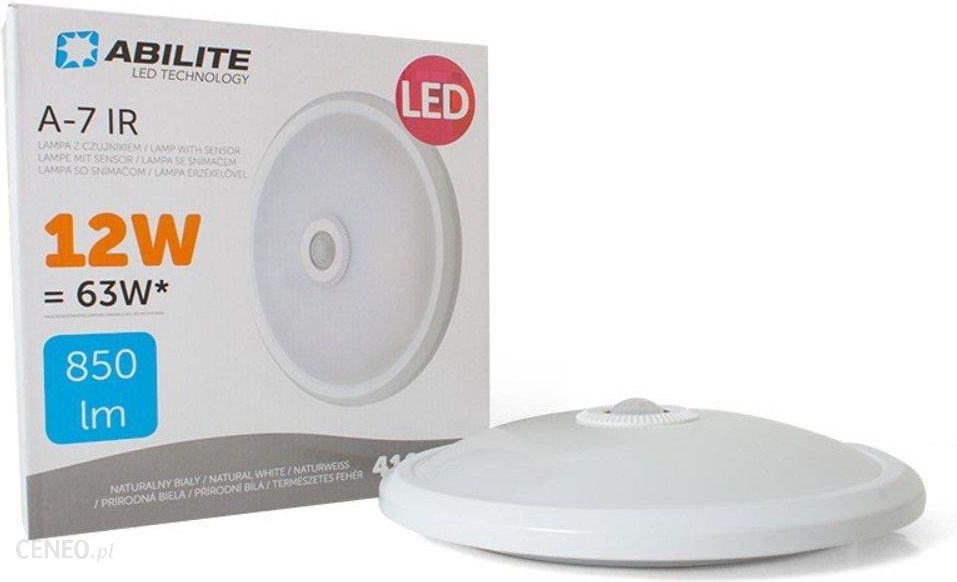 pOkrągły plafon o średnicy 300 mm, wyposażony diody LED o łącznej mocy 12W, o bardzo długim czasie świecenia i wysokiej jasności, przy jednoczesnym niskim zużyciu prądu. Dzięki wysokiej odporności na wszelkiego rodzaju wstrząsy i uderzenia cechuje się ona bardzo niską awaryjnością. Wyposażono go w IR czujnik ruchu. brbrPlafon idealnie nadaje się do montażu zarówno na suficie jak i na ścianie. Idealnie sprawdzi się jako oświetlenie salonu, kuchni, sypialni, gabinetu, przedpokoju czy też klatki schodowej. brbrAbilite LED, to nawet 80% oszczędność energii elektrycznejbrCzy wiesz, że wymieniając standardowe oświetlenie na oświetlenie LED możesz zaoszczędzić nawet 80% energii? Zakup oświetlenia LED zwróci się bardzo szybko, a Ty zmniejszysz swoje rachunki za prąd i będziesz oszczędzać pieniądze i środowisko. brbrAbilite LED, to wierne i naturalne kolorybrProdukty oświetleniowe LED marki Abilite posiadają wysoki współczynnik oddania barw (CRI), dzięki czemu bardzo wiernie i naturalnie oddają kolory oświetlanych przedmiotów. brbrAbilite LED świecą zaraz po włączeniubrNie czekaj aż Twoje oświetlenie osiągnie maksymalną jasność, nasze źródła światła LED świecą pełną jasnością zaraz po włączeniu./p