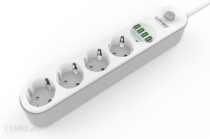 Przedłużacz – listwa zasilająca + szybka ładowarka 4 gniazda sieciowe + 4x USB LDNIO SE4432Specyfikacja:Kolor: biały4 porty USB 5V max 3.4A (17W)4 gniazda zasilające z uziemieniemDługość kabla 2 mMoc znamionowa max. 2500WNapięcie znamionowe: AC 100V~250V Posiada wyłącznik główny zasilaniaBezpieczne gniazda zasilająceWbudowane zabezpieczenia chroniące podpięte urządzeniaListwa wykonana z ognioodpornych materiałów (do 750)Mocna wytrzymała konstrukcja, stabilne wtykiZapewnia szybkie ładowanie Wymiary 290x52x41mmmInne:100% Oryginalna listwa marki LDNIOCertyfikaty: RoHS, CEZestaw zawiera:Oryginalną listwę ładowarkę 4xUSB, 4 gniazda sieciowe LDNIO SE4432Oryginalne opakowanie producenta.Listwa zasilająca – przedłużacz i mocna ładowarka sieciowa w jednymListwa zasilająca LDNIO posiada 4 porty USB i 4 gniazda sieciowe, co pozwala na równoczesne podłączenie 8 różnych urządzeń.Przedłużacz wyposażony jest w gniazda sieciowe z uziemieniem i dodatkowym zabezpieczeniem przed wsuwaniem do środka małych przedmiotów (ochrona dzieci przed porażeniem).Wygodne ładowanie z zasilaczem premium LDNIO SE4432Porty USB wyposażone są w automatyczne dopasowanie natężenia prądu do podłączonego urządzenia max do 3.4A co pozwala na szybkie ładowanie smartfona, tabletu, power banku, a jednocześnie podłączenie telewizora, laptopa czy lampki nocnej.Wbudowane wewnętrzne zabezpieczenia i konstrukcja portów umożliwia inteligentne ładowanie urządzeń przenośnych niezależnie od marki i producenta.Wysoka jakość wykonania przedłużaczaZasilacz LDNIO SE 4432 posiada mocną konstrukcje. Wykonany jest z wysokiej klasy wytrzymałych materiałów, które zapewniają długotrwałe użytkowanie. Wykorzystane do produkcji materiały są niepalne i odporne na wysokie temperatury (do 750).Podłużny zasilacz o solidnym wykończeniu Zasilacz LDNIO SE4432 jest niewielkich rozmiarów, podłużny (29x5x4cm), posiada antypoślizgowe podkładki, które stabilizują listwę na miejscu oraz praktyczny wyłącznik główny zasilania.Solidnie wykonany w klasycznym minimalistycznym stylu.100% Oryginalny zasilacz LDNIO SE4432 4X gniazdo sieciowe, 4X USBZasilacz LDNIO wysyłamy nowy, zapakowany w oryginalne opakowanie producenta.LDNIO – innowacyjny producent zasilaczy, przedłużaczy, kabli oraz akcesoriów GSM. Produkty tej marki cechują się perfekcyjnym wykonaniem i najwyższą jakością użytych podzespołów segmentu premium.