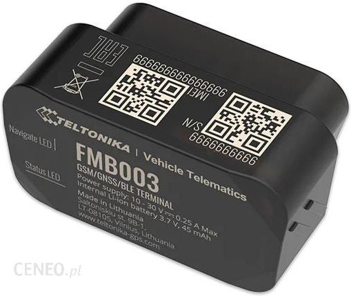 Urządzenie typu plug and play z możliwością odczytu parametrów OEM dedykowane do OBD nowej generacji!FMB003 to bardzo małe urządzenie typu plug and play przeznaczone do OBD nowej generacji. Główną cechą FMB003 jest możliwość odczytu parametrów OEM (PID) przez port OBD. Za pomocą tego urządzenia będziesz mógł odczytać dane rzeczywistego przebiegu i rzeczywistego poziomu paliwa. Co więcej, nasze urządzenie jest dostarczane z listą obsługiwanych pojazdów i listą danych, więc nie musisz już zgadywać – teraz wiesz, jakie dane możesz odczytać z konkretnego pojazdu.Lokalizator jest doskonałym narzędziem do śledzenia oraz wielu różnych zastosowań – w tym zarządzania flotą lekkich samochodów dostawczych, dziennika kierowcy, telematyki ubezpieczeniowej (UBI), wynajmu i leasingu samochodów i innych.Urządzenie obsługuje różne czujniki BLE 4.0, sygnalizatory, zestawy głośnomówiące, aktualizacje oprogramowania układowego i konfiguracji przez Bluetooth – rozszerzając tym samym swój bogaty zestaw funkcji.FMB003 – buduje nowy standard w śledzeniu OBD!Teltonika zaprezentowała najnowsze urządzenia OBD, w tym FMB003.Niezwykle małe z zewnątrz, ale tak potężne w środku-przełomowe trackery otwierają zupełnie nowe możliwości. Te urządzenia połączeniowe 2G, GNSS i BLE 4.0 łączą w sobie najlepsze doświadczenia zebrane przez Teltonika przez lata pracy w branży telematycznej oraz coś bardzo nowego i świeżego.SPECYFIKACJA: