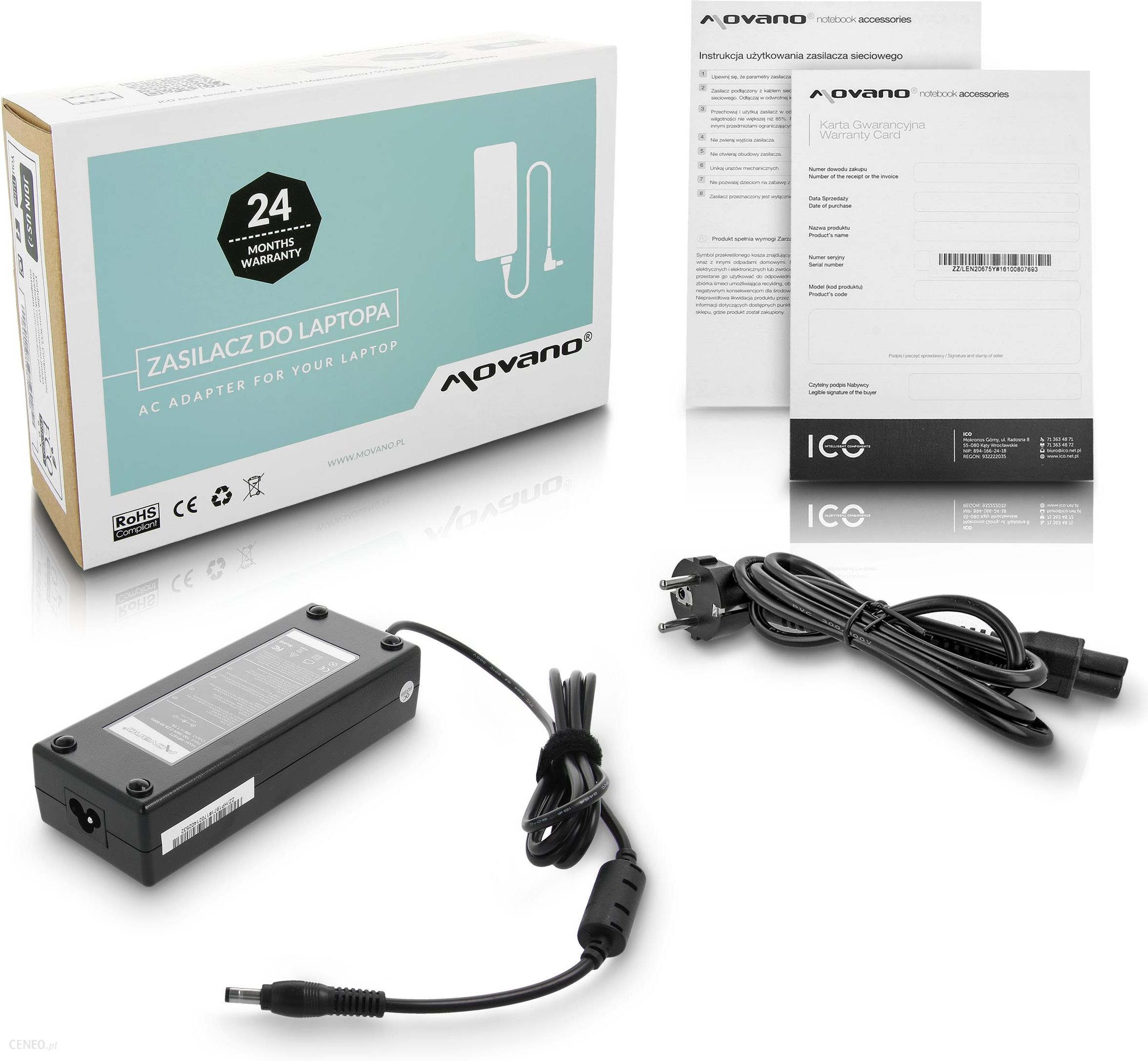 Nowy zasilacz do laptopa HP Compaq firmy Movano wyposażony został w filtr ferrytowy oraz w doskonałe zabezpieczenia chroniące przed przepięciem, przegrzaniem, przeciążeniem i przeładowaniem. Ładowarki do laptopów HP Compaq skierowane są do najbardziej wymagających użytkowników, ceniących sobie bezstresową i komfortową pracę. O jakości produktu świadczą uzyskane certyfikaty: CE, ROHS, FCC oraz ścisła kontrola jakości eliminująca powstanie ewentualnych defektów.JAKOŚĆ PRZEDE WSZYSTKIM• Odporność temperaturowa – Badany jest wpływ wysokich i niskich temperatur na odporność układów zabezpieczeń oraz parametry elektryczne zasilacza.•Test elektryczny – Testowanie poprawności połączeń elektrycznych pomiędzy poszczególnymi elementami składowymi zasilacza.•Test przeciwzwarciowy i przepięciowy – Badana jest reakcja układów zabezpieczających zasilacza na skutek zwarcia oraz nagłego skoku napięcia symulowanego poprzez podanie na wejściu zasilacza impulsu wysokonapięciowego.• Test końcowy – Testuje się poziom napięcia wyjściowego zasilacza, poddając go godzinnemu, ciągłemu obciążeniu.W komplecie znajduje się przewód zasilający, karta gwarancyjna oraz instrukcja obsługi.Jak dobrać odpowiedni zasilacz? :Parametry zasilania DC (direct current – prąd stały) podane są zazwyczaj pod laptopem na naklejce za napisem INPUT- napięcie V (wolty) zasilacza powinno się zgadzać z wartością podaną nalaptopie- natężenie prądu A (ampery) powinno być równe lub większe od wartościpodanej na laptopie, ten parametr oznacza maksymalny prąd jakim wolnoobciążyć zasilacz, o wielkości obciążenia decyduje laptop- moc W (waty) to wynik przemnożenia napięcia i prądu- kształt i wielkość wtyku – prosimy porównać ze zdjęciem oferowanegoprzedmiotu oraz z wymiarami wtyku podanymi w opisie; możemy równieżustalić na podstawie bazy danych producenta zasilaczyZamienne z:0227C19120, 308745-001, 309241-001, 310925-001, 316687-002, 316688-001, 317188-001, 344895-001, 345312-002, 345312-003, 346958-001, 350221-001, 91.49V28.002, DR910A, DR910AABA, DR912AABA, HSTNN-HA01, HSTNN-SA01, LC.T3001.001, PA3290U-2ACAKompatybilne z:Acerseria Aspire1500,1500LCE,1500LCI,1500LMI,1501,1501LCE,1501LCI,1501LMI,1502,1502LCE,1502LM,1502LMI,1510,1510LC,1510LM,1510LMI,1511,1511LC,1511LCE,1511LCI,1511LM,1511LMI,1512,1512LMI,1513,1513LM,1513LMI,1514,1514LMI,1520,1520LMI,1521,1521LCI,1521LMI,1522,1522LC,1522LMI,1522WLM,1522WLMI,1523,1523LMI,1523WLM,1523WLMI,1524,1524LMI,1524WLM,1524WLMI,1600,1601,1601LC,1602LC,1602LM,1603ELC,1603ELM,1603LC,1603LCE,1604LC,1604LM,1605DLC,1605LC,1605LM,1606LC,1606LM,1610,1610LM,1612,1612LM,1612LMI,1613,1613LC,1613LM,1615LMI,1620,1620LC,1620LMI,1621,1621LC,1621LM,1621LMI,1622LC,1622LM,1622LMI,1622WLM,1622WLMI,1660,1664,1664LM,1664LMI,1664WLCI,1664WLM,1664WLMI,1670,1670WLMI,1671LC,1671LM,1671LMI,1671WLC,1671WLM,1671WLMI,1672LM,1672LMI,1672WLCI,1672WLM,1672WLMI,1673,1673LMI,1673WLM,1673WLMI,1674,1674WLM,1674WLMI,9810,9813WKMI,9814WKMI,9920,seria Aspire V15 nitroVN7-591,AsusA2G,A2T,A4G,A4L,Compaqseria PresarioR3000,HPseria Business NotebookNX9100,NX9105,NX9110,NX9500,seria PavilionZD7000,ZD7000A,ZD7001EA,ZD7001US,ZD7005EA,ZD7005QV,ZD7005US,ZD7009EA,ZD7010EA,ZD7010QV,ZD7010US,ZD7012EA,ZD7015EA,ZD7015US,ZD7020EA,ZD7020US,ZD7030EA,ZD7030US,ZD7035EA,ZD7038EA,ZD7040EA,ZD7040US,ZD7045EA,ZD7048CL,ZD7049EA,ZD7050EA,ZD7050US,ZD7058CL,ZD7060EA,ZD7063EA,ZD7065EA,ZD7066EA,ZD7070EA,ZD7080EA,ZD7101 N,ZD7101US,ZD7102US,ZD7112EA,ZD7120EA,ZD7128EA,ZD7129EA,ZD7131EA,ZD7139EA,ZD7140US,ZD7141EA,ZD7143EA,ZD7144EA,ZD7145EA,ZD7160US,ZD7168CL,ZD7168EA,ZD7169EA,ZD7170EA,ZD7180US,ZD7188CL,ZD7198CL,ZD7200 C,ZD7202US,ZD7230US,ZD7249CL,ZD7256EA,ZD7260US,ZD7269CL,ZD7280US,ZD7310US,ZD7360US,ZD7379CL,ZD7380US,ZD7385EA,ZD7389CL,ZD7998US,ZD7999US,ZX5000,Toshibaseria SatelliteA60,A60-30,A60-40,A60-60,A60-S1173,A60-S156,A60-S1561,A60-S159,A60-S1591,A60-S166,A60-S1661,A60-S1662,A60-S1691,A60-S176,A65,A65-S1063,A65-S1064,A65-S1065,A65-S1066,A65-S1067,A65-S1068,A65-S1069,A65-S1070,A65-S109,A65-S1091,A65-S136,A65-S176,A65-S1762,A70,A70-40,A70-60,A70-80,A70-S213,A70-S2362,A70-S2482,A70-S249,A70-S2491,A70-S256,A70-S2561,A70-S259,A70-S2591,A70-SP211,A75,A75-S125,A75-S1251,A75-S1252,A75-S1253,A75-S1254,A75-S1255,A75-S206,A75-S2061,A75-S209,A75-S2091,A75-S211,A75-S2111,A75-S2112,A75-S213,A75-S2131,A75-S226,A75-S2261,A75-S229,A75-S2291,A75-S2293,A75-S231,A75-S2311,A75-S276,A75-SP213,A75-SP2131,P25-S670,P25-S676,P25-S6761,P30,P30-100,P30-40,P30-60,P30-80,P30-S6362,P30-S6363,P35,P35-S605,P35-S6053,P35-S609,P35-S6091,P35-S611,P35-S6111,P35-S6112,P35-S629,P35-S6291,P35-S6292,P35-S631,P35-S6311,P35-SP611,