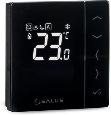 Podstawowe właściwości: • Funkcja PWM – gwarantuje precyzyjne utrzymanie zadanej temperatury w pomieszczeniu• Funkcja VP – chroni zawory termostatyczne przed zastaniem• Funkcja NSB (redukcja nocna jako regulator podrzędny – Slave)• Możliwość pracy w trybie GRZANIE / CHŁODZENIE• Ochrona przed zbyt wysoką / niską temperaturą• Wejście na dodatkowy czujnik temperatury podłogi• Funkcja ochrony przed zamarzaniem• Grubość po montażu w puszce ø 60 mm -16,5 mm• Kompatybilny z KL08NSB lub KL06 (230 V)Dane techniczne:Zasilanie 230V AC 50 HzMax obciążenie 3 ASygnał wyjściowy 230V AC 50 HzZakres regulacji temperatury 5 – 35ºCDokładność wskazania temp. 0.5ºCHistereza ±0.25ºC lub ±0.5ºCWymiary [mm] 86 x 86 x 42